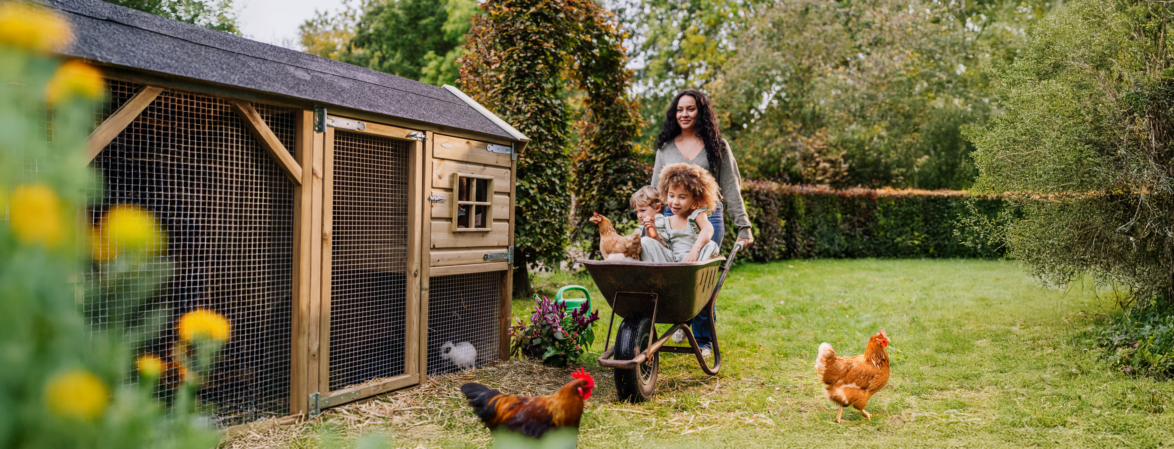 Unsere Hühner- und Hasenställe bieten deinen Tieren einen sicheren und komfortablen Ort zum Erkunden – gefertigt aus raubtiersicherem Drahtgeflecht und mit hochwertigen, wetterfesten Dächern ausgestattet.